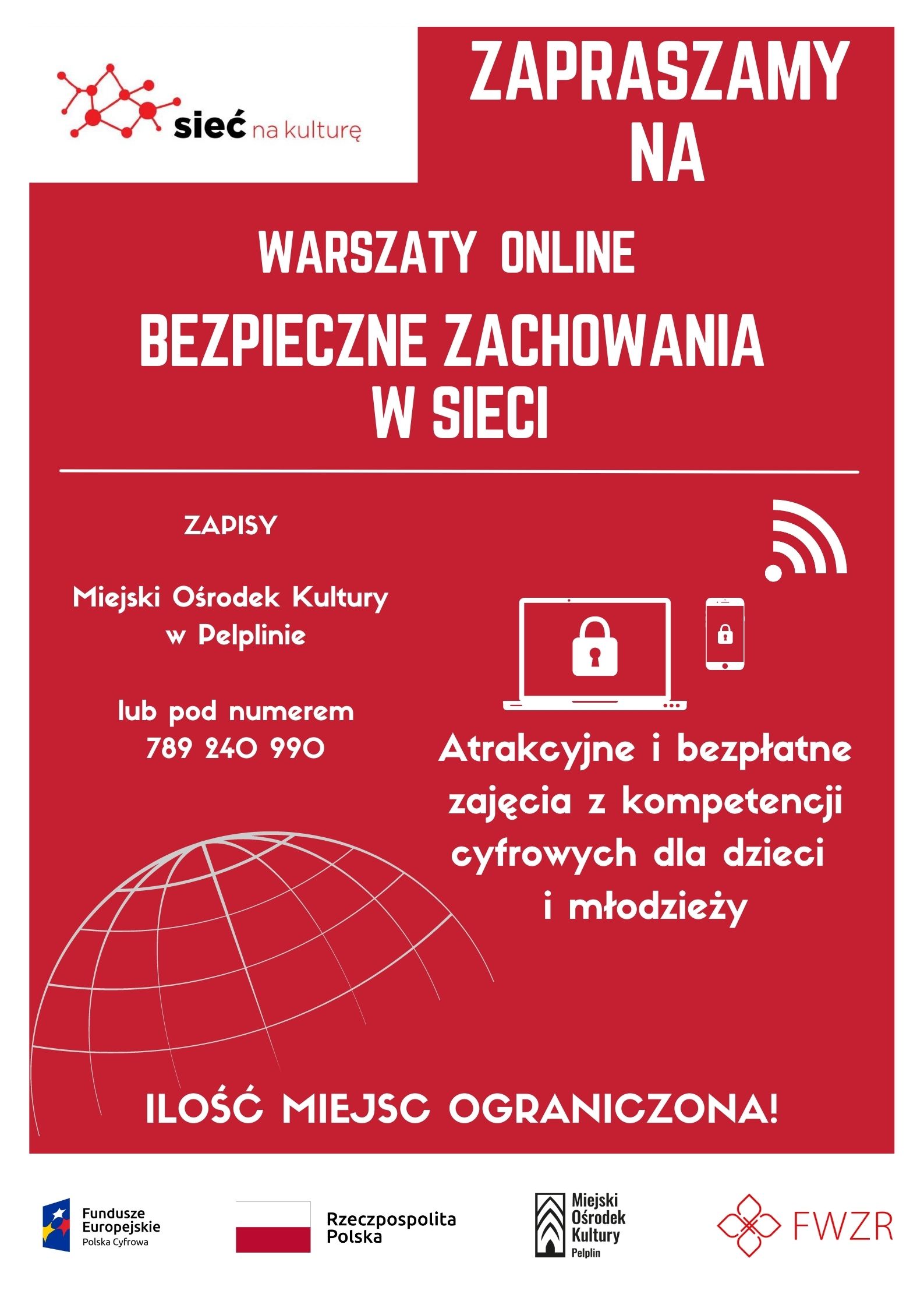 Zapraszamy do udziału w darmowym szkoleniu w zakresie bezpieczeństwa w Internecie. Szkolenie skierowane jest do młodzieży w wieku szkolnym 13-18 lat. Organizator: Miejski Ośrodek Kultury w Pelplinie we współpracy z Fundacją Wspierania Zrównoważonego Rozwoju. Program szkolenia: (31 godzin lekcyjnych): -